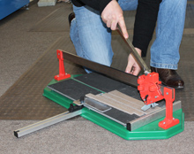 Представляет собой шарнирный инструмент. На одной губке установлен режущий ролик из карбидвольфрамового сплава (ВК8), на другой губке установлен упор. Режущим элементом проводите по линии реза, далее упор устанавливается на край плитки и, с помощью ручек-рычагов, производится переламывание.