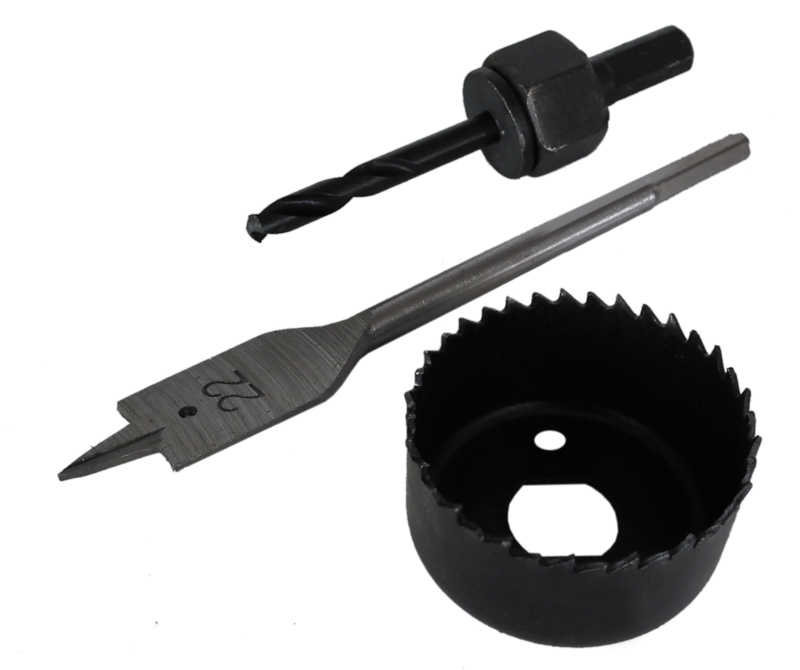 - в набор входят коронка по дереву в сборе, перовое сверло диаметром 22мм. Удобны при монтаже дверных ручек.